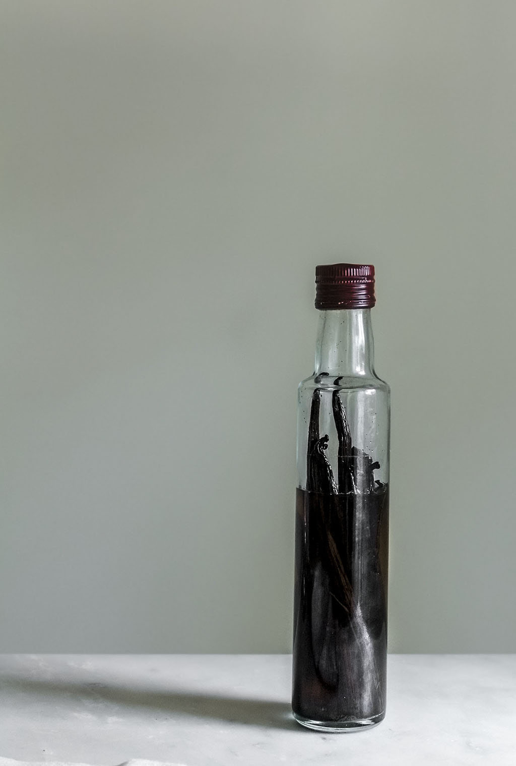 Aunque es preferible hacerlo con vainas nuevas y de calidad, yo primero las utilizo para lo que sea y después las «reciclo» para el tarrito perenne de extracto que escondo en el fondo del armario de mi cocina. Para hacerlo sólo tienes que infusionar vainas de vainilla en alcohol de alta graduación, ya que el extracto no es más que una infusión en alcohol, que se deja macerar.